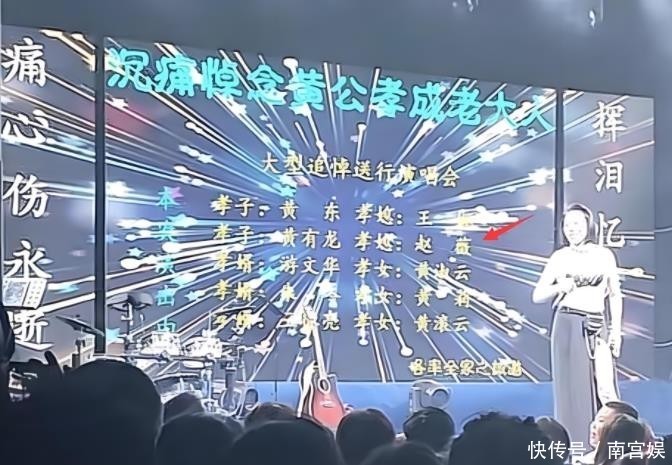 另外,黄有龙的父亲在2023年去世,在丧礼现场的大屏上,赫然出现赵薇的名字,身份则是“儿媳”。
